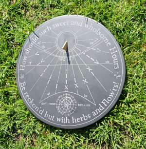 Horizontal sundial, in Welsh slate, made for a location in Devon,
